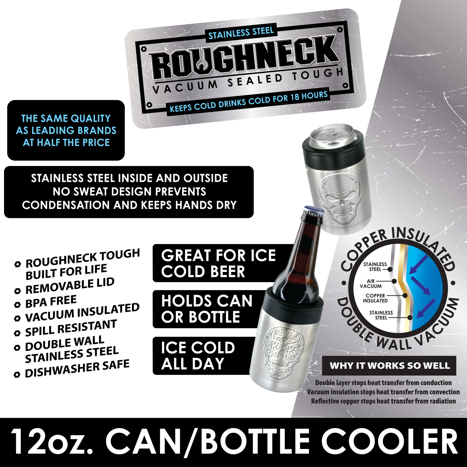 ITEM NUMBER 022268L 120Z METAL CAN COOLER A DEBOSSED - STORE SURPLUS NO DISPLAY 6 PIECES PER PACK