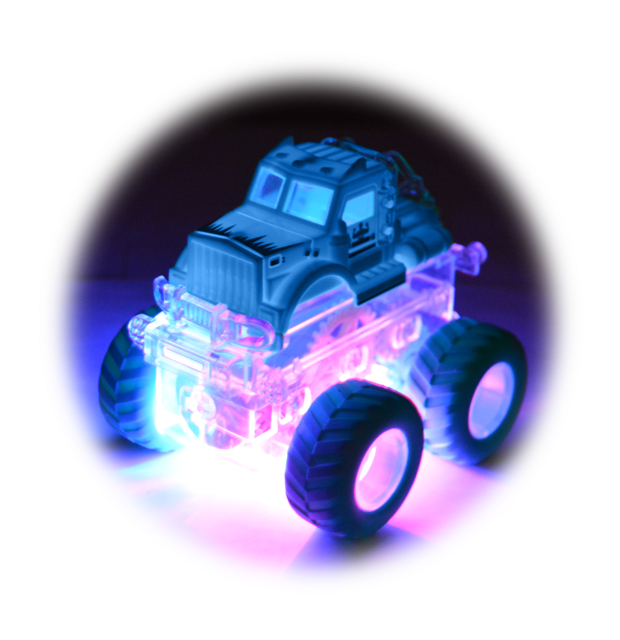 Gear Racers Light Up Vehicle Value Packs feature multicolor light-up action, push and go friction power and 360º stunt spin! Display includes six(6) value packs containing three(3) vehicles each —18 total— talk about bang for your buck! Ages 3+. Assorted colors. Batteries included for light-up action! Anti-skid rubber grip wheels – perfect for indoor AND outdoor play.