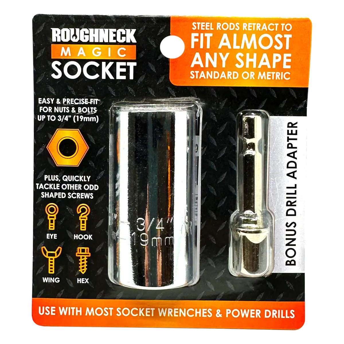 Experience the magic with our Magic Socket Tool! It easily and precisely fits nuts and bolts up to 3/4" (19mm) and can quickly tackle other odd-shaped screws like Hex, hook, eye, and wing. With retractable steel rods, this tool can form almost any shape, making it a must-have for any toolbox.