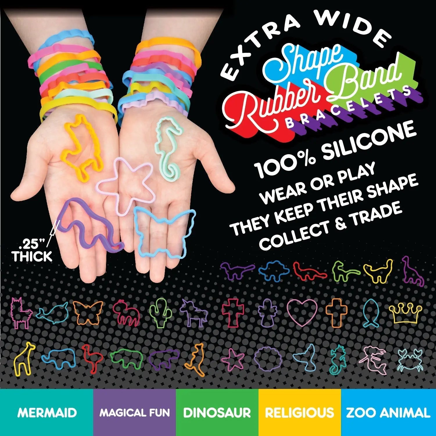 ITEM NUMBER 026640 WIDE SHAPE RUBBER BANDS 24 PIECES PER DISPLAY