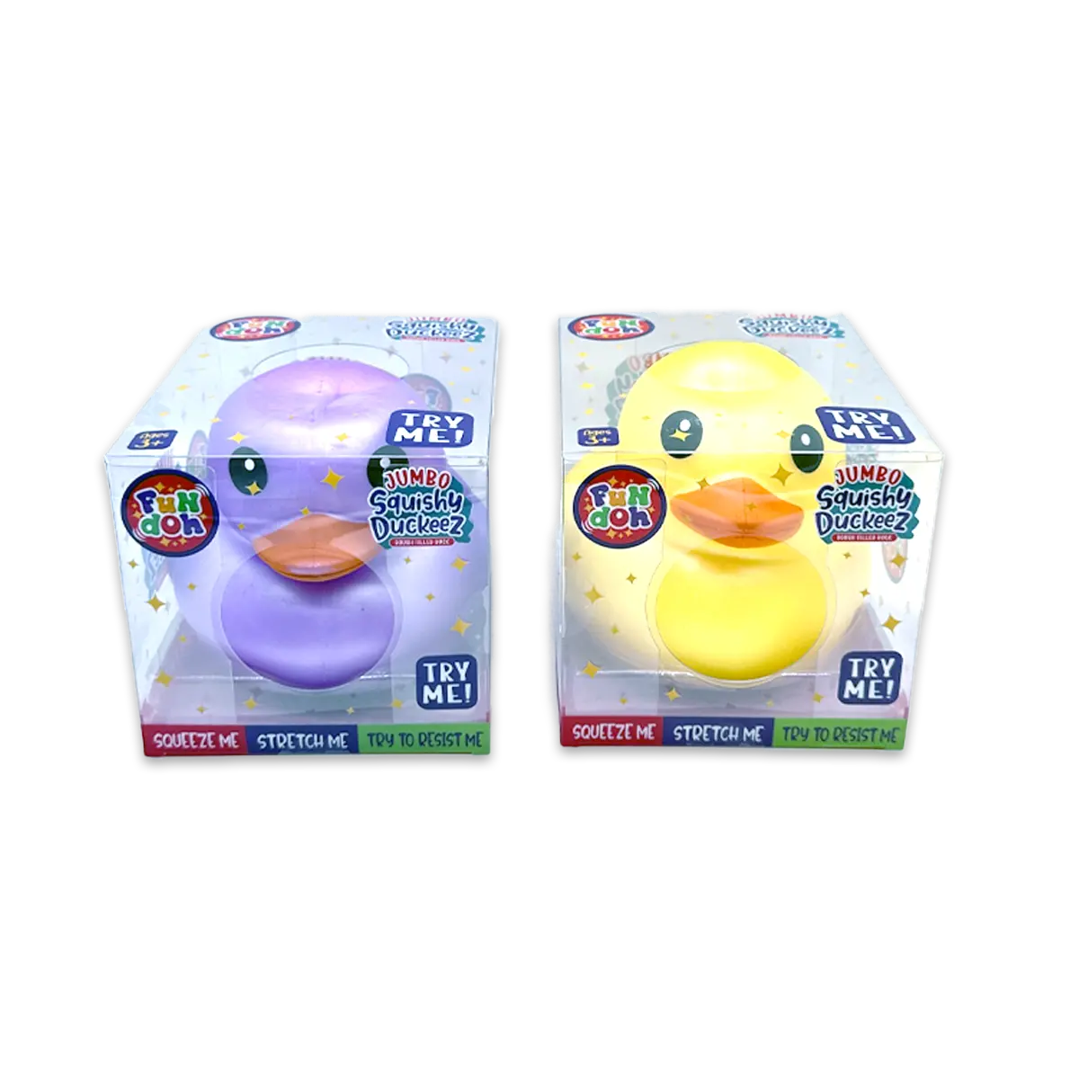 Introducing Fun Doh Jumbo Squishy Duckeez- the ultimate stress relief fidget toy! These dough filled ducks are perfect for squeezing and stretching, providing endless fun and relaxation. Once you pick one up, you won't want to put it down!