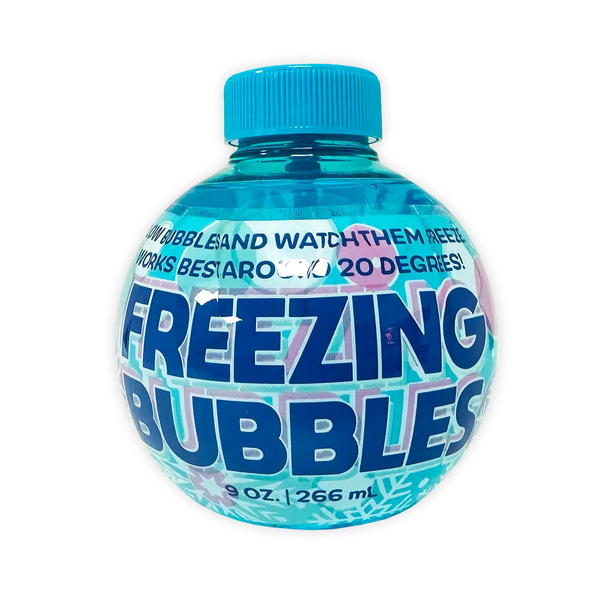 GREAT STOCKING STUFFER! Blow bubbles and watch them freeze. Works best around 20 degrees. Twelve 9 oz. bottles in inner box with toy bin card included for use on the So Much FUN! Toy Bin Program corrugated display or in the clear toy bin pockets. Product fits short or tall bins.