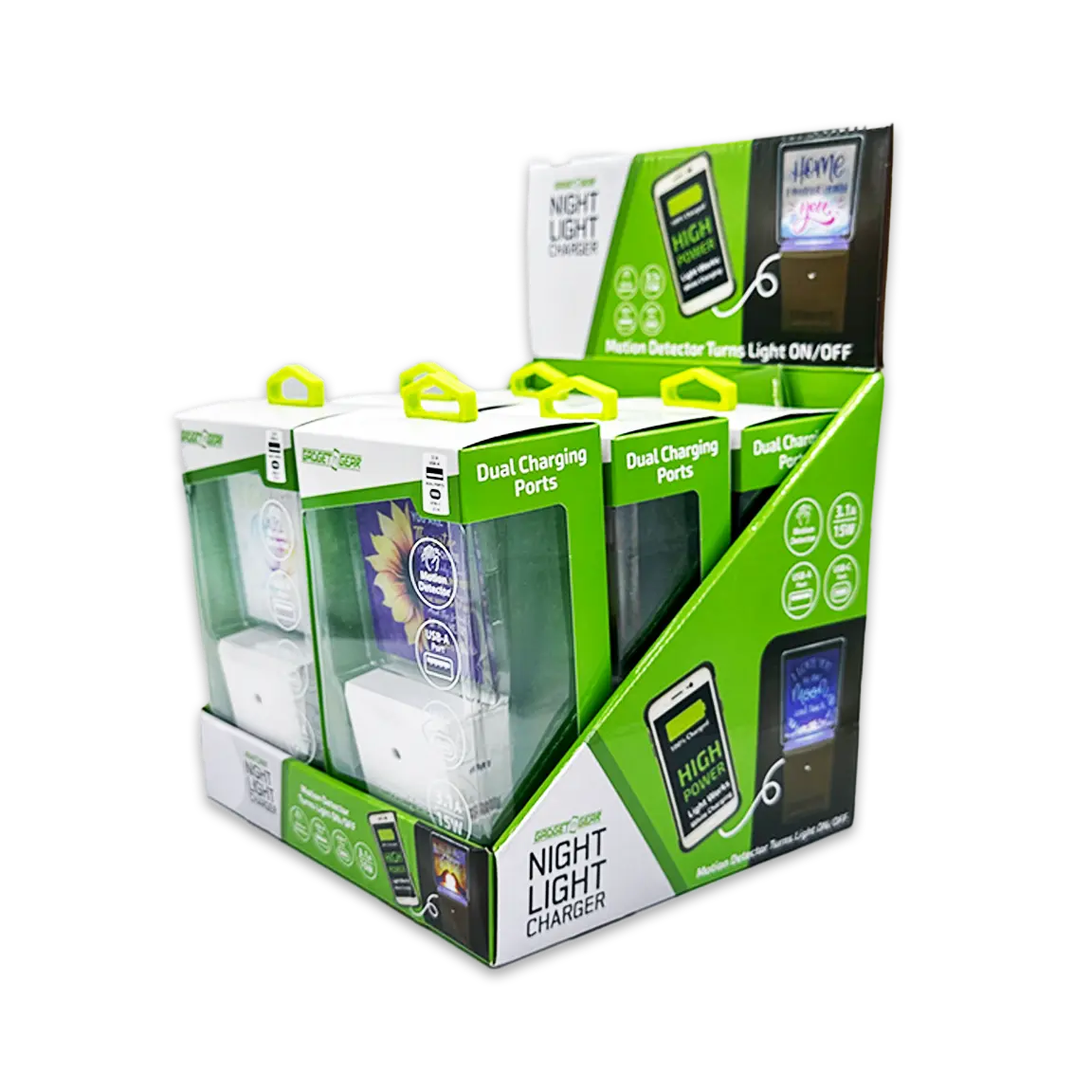 Night Light USB / USB-C Dual Port AC Wall Charger - 6 Pieces Per Retail Ready Display 25132