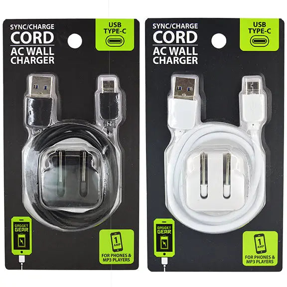 AC Wall Charger Dual USB / USB-C Ports with USB-C to USB-C Charging Cable Set 20 Watts - 3 Pieces Per Set 24628