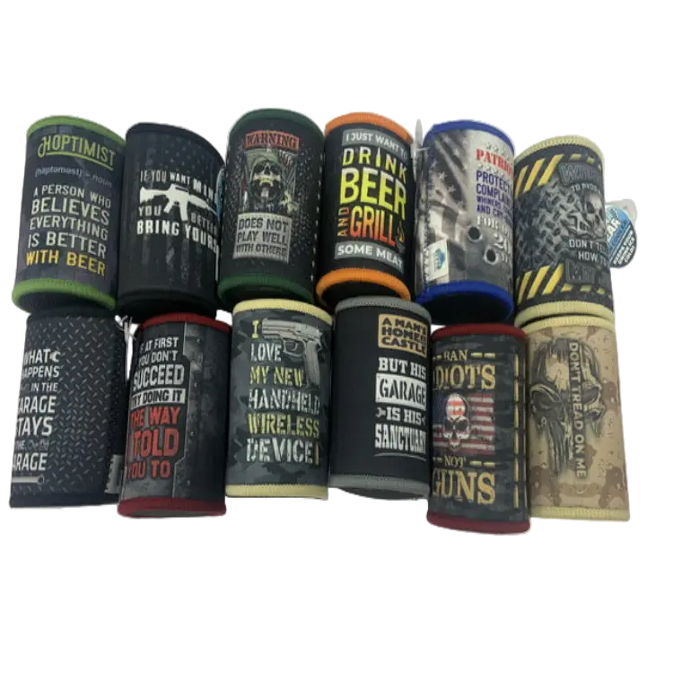 Premium Insulated Can Coolers keep your beverages ice cold! 5mm THICK quality neoprene for premium insulation. Featuring non-skid rubber bottom. Reinforced seams, top & bottom stitched. Highest quality on the market, and bottle opener included! Comes in a variety of printed designs. Perfect for bottles too!