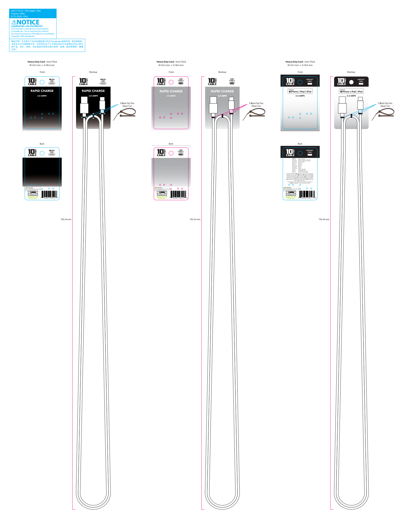 MFi-certified Lightning cable designed for reliable charging and data transfer. This 10-foot length provides extended reach from wall outlets, car chargers, or power banks to your device. Built to Apple's specifications for compatibility with iPhones, iPads, and iPod touch models. Durable construction withstands daily use and frequent coiling. Ideal for retail display, wholesale distribution, or bulk gifting programs.