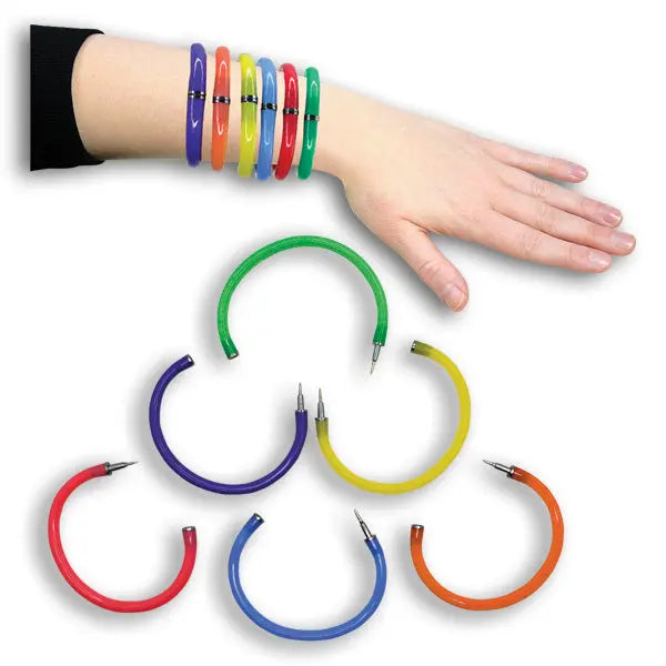 2.5" bendable ballpoint pens can be worn as bracelets! Assorted colors.