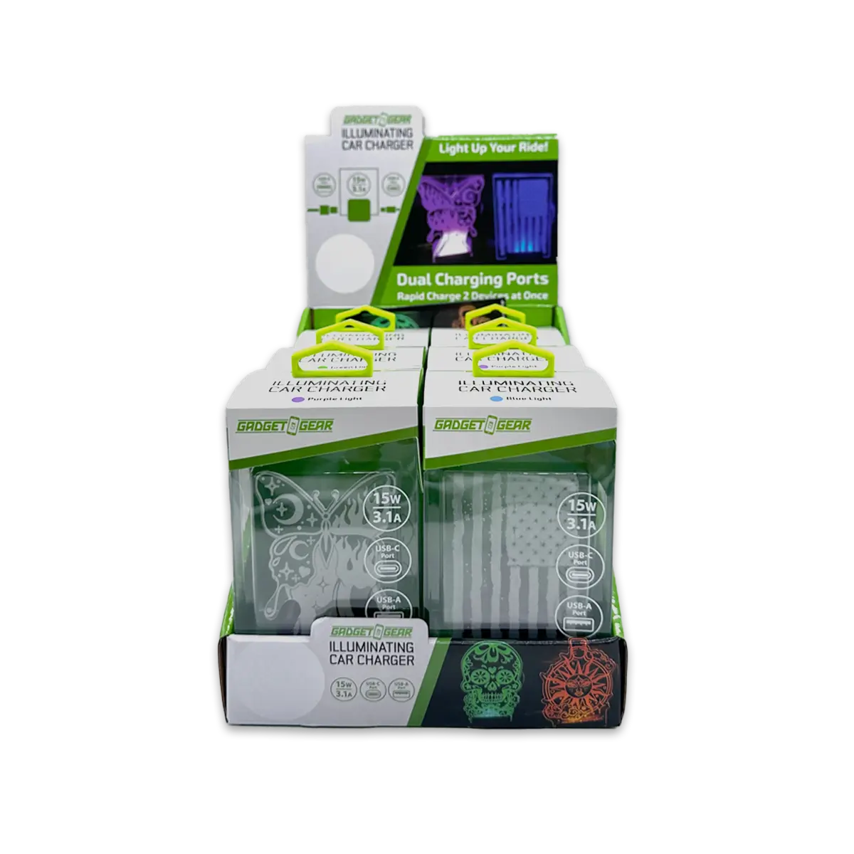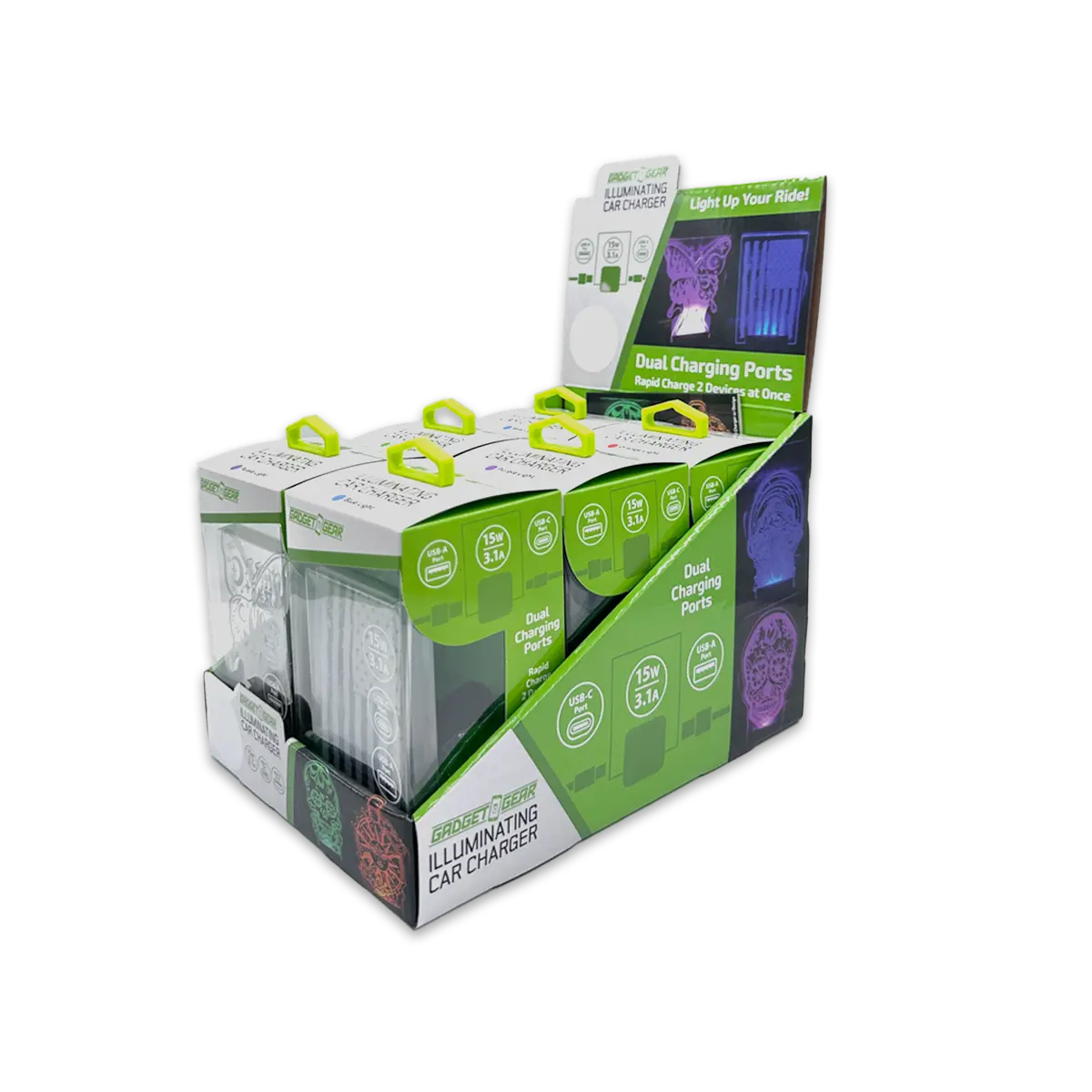 Car Charger DC Dual Port USB / USB-C with Illuminating Effects - 6 Pieces Per Retail Ready Display 25272