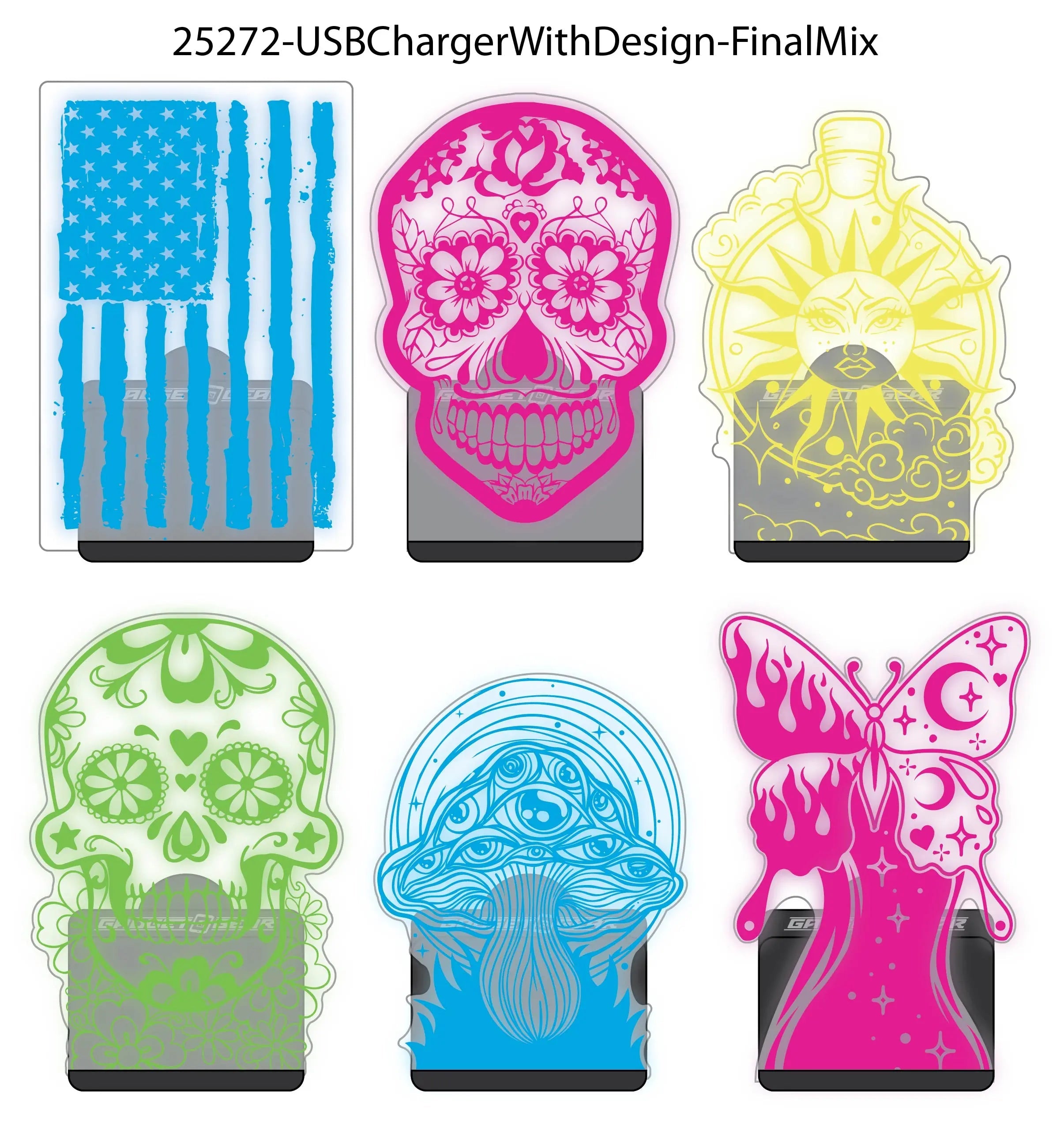 Our Illuminating USB and USB-C Dual DC Car Charger gives you the power to charge two devices at once, so you can stay connected and ready for anything with 15 watts / 3.1A of power! Includes a variety of color and design styles. Light up the night with its illuminating light. Brighten up any car interior and get charged up in no time!Β