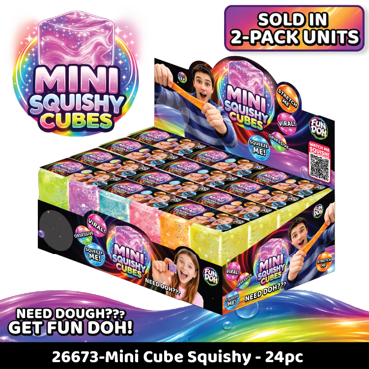 Fun Doh Mini Squishy Cube 2-Pack Set - 12 Sets Per Retail Ready Display 26673
