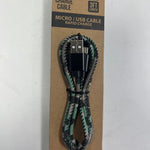 Camo themed canvas charge cables. 2.4 Amps with aluminum connectors.Â