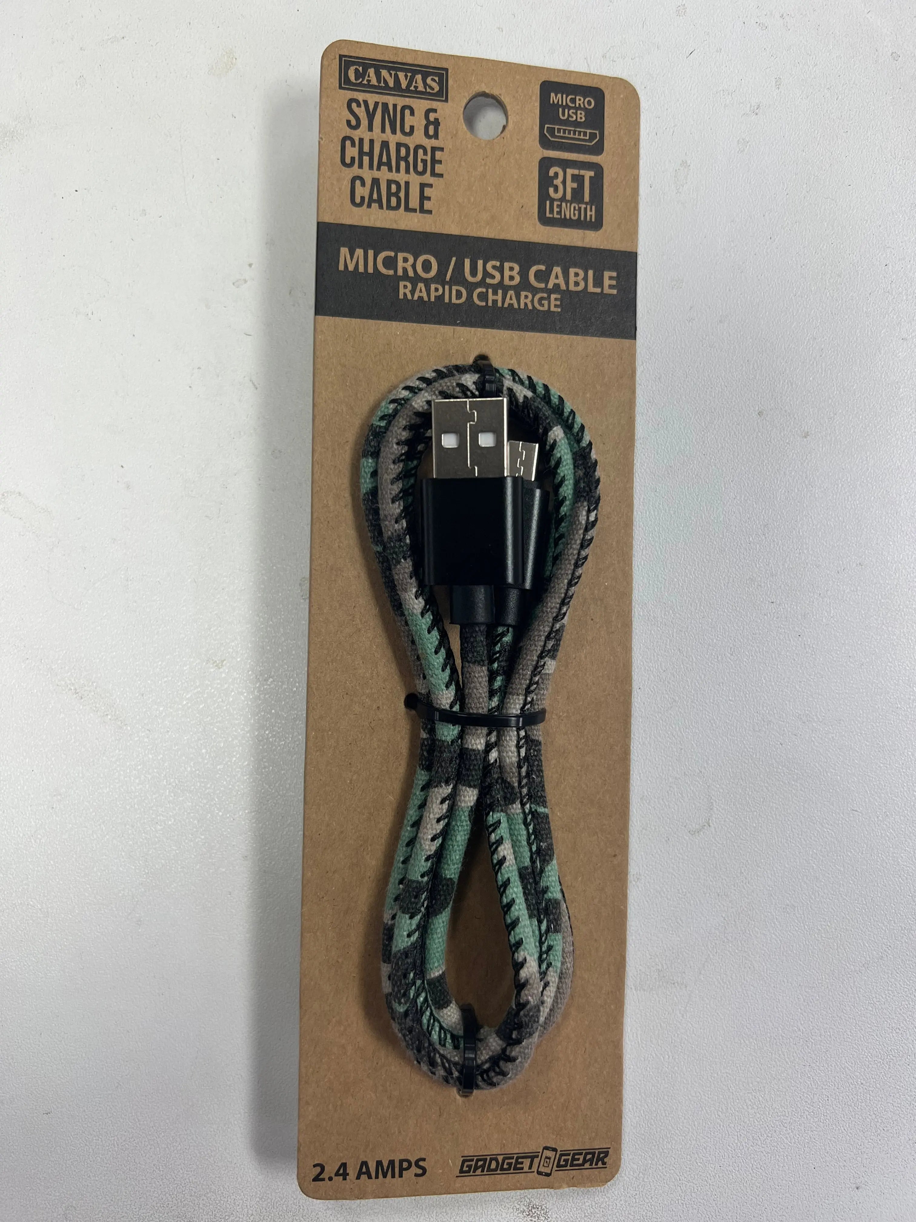 ITEM NUMBER 021772L 3FT WORN CANVAS CABLE MICRO - STORE SURPLUS NO DISPLAY 10 PIECES PER PACK