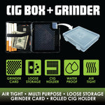Our Smoking Tool Box features a free grinder card! Great for rolled cigarettes. Airtight, waterproof and smell proof! Includes a variety of embossed design styles.