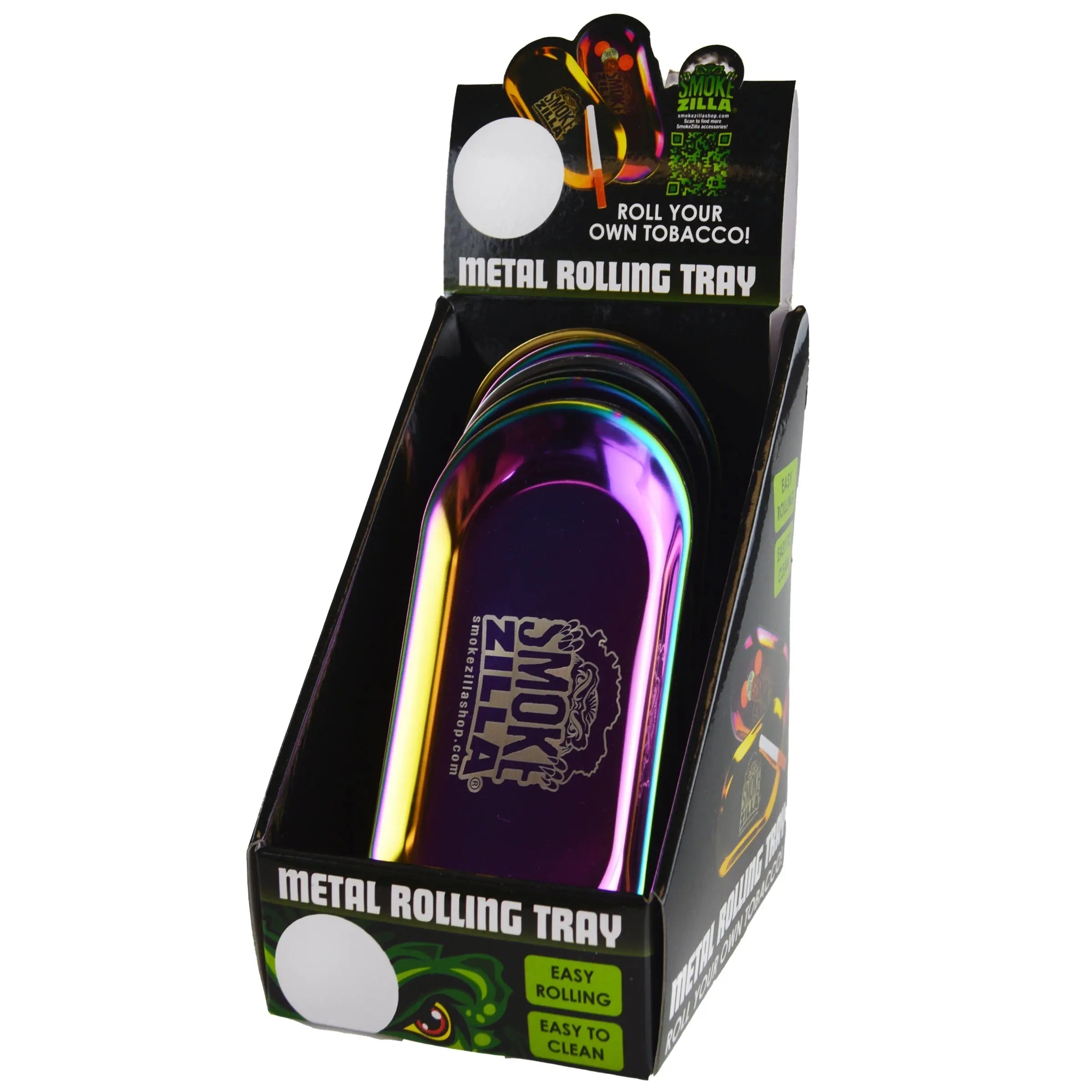 Easy to clean Smokezilla METAL rolling tray perfect for rolling your own cigarettes or storing keys jewelry and more. Comes in assorted on-trend metallic and matte designs.Β