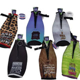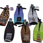 Premium Insulated Rhinestone Bottle Suits keep your drinks ice cold! 5mm THICK quality neoprene for premium insulation. Featuring non-skid rubber bottom. Reinforced seams, top & bottom stitched. Highest quality on the market, and bottle opener included! Each display includes an assortment of sassy rhinestone phrase designs.