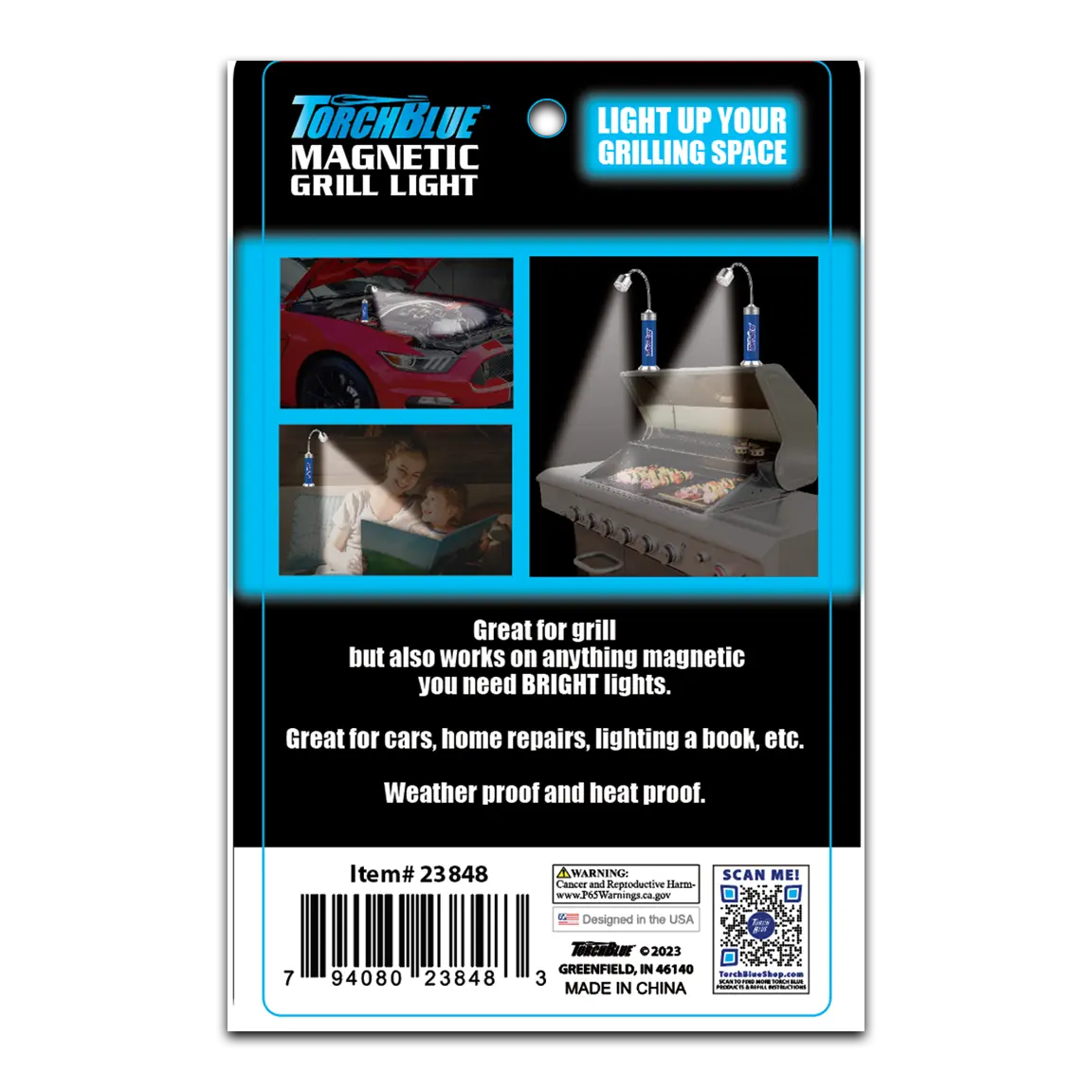 This Torch Blue Magnetic Grill Light is perfect for grilling and more! Its comfortable ergonomic handle makes it easy to grip. Each display of six(6) includes LED lights with high powered magnets that can attach to any magnetic surface. The flexible tube allows you to point the 9 high intensity LED lights wherever you need it, making it ideal for car repairs, lighting a book, and so much more! Batteries included.