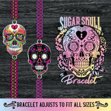 Add some color and style to your wardrobe with this pack of adjustable sugar skull bracelets. Adjusts to fit all sizes. Comes in a variety of bold designs and colors, perfect for any fashionista!