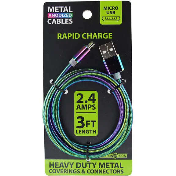 Rainbow metallic charge cable. High quality cable with 2.4 Amp rapid charge. Each display contains: