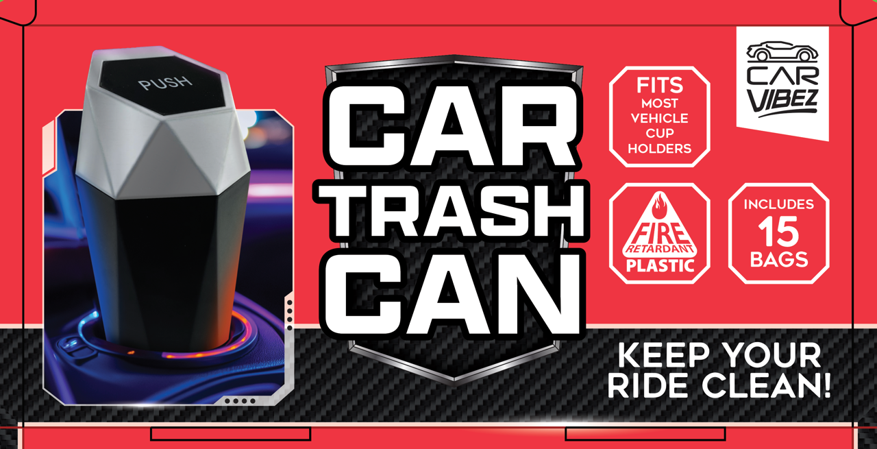 Keep your car clean and organized with our Mini Car Trash Can Accessory! It fits most cup holders and features a retractable door for easy disposal. Made from fire retardant material, it also doubles as a cigarette butt bucket. Each Mini Trash Can comes with 15 mini trash bags!