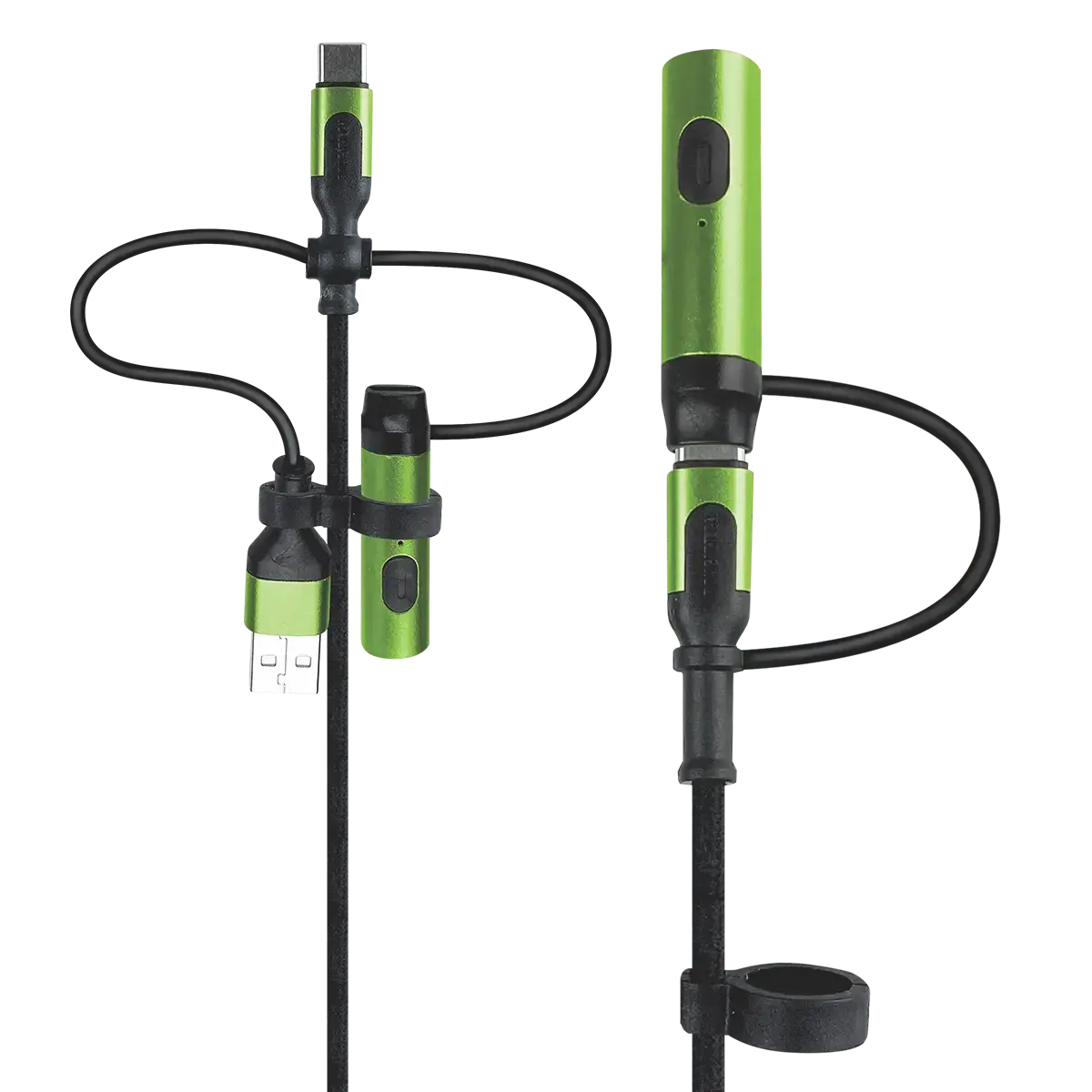 Introducing our Multi-Tool Charging Cable Coil Lighter plus Flashlight! Crafted with Kevlar material and measuring 4 ft. in length, this reliable cable is perfect for charging phones, computers, and even vape devices. With both USB-A-to-C and USB-C-to-C ports, it's great for on-the-go charging in cars and the built-in lighter and flashlight are an extra convenient touch.Β