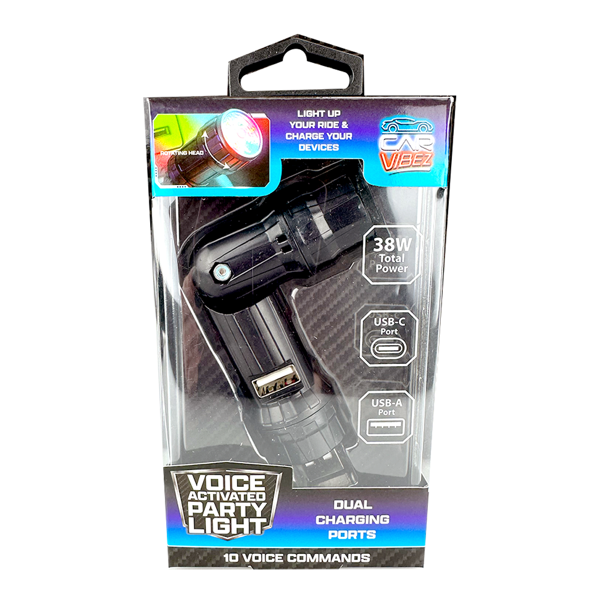 Experience entertainment and functionality combined with this voice-activated party light. Install it in your car or room and enjoy 10 dynamic lighting effects controlled entirely by voice - simply say "party light" to activate your preferred mode. The dual 3.1 AMP charging ports with USB-A and USB-C support let you charge multiple devices simultaneously while the light creates the perfect ambiance. Never compromise between style and utility!