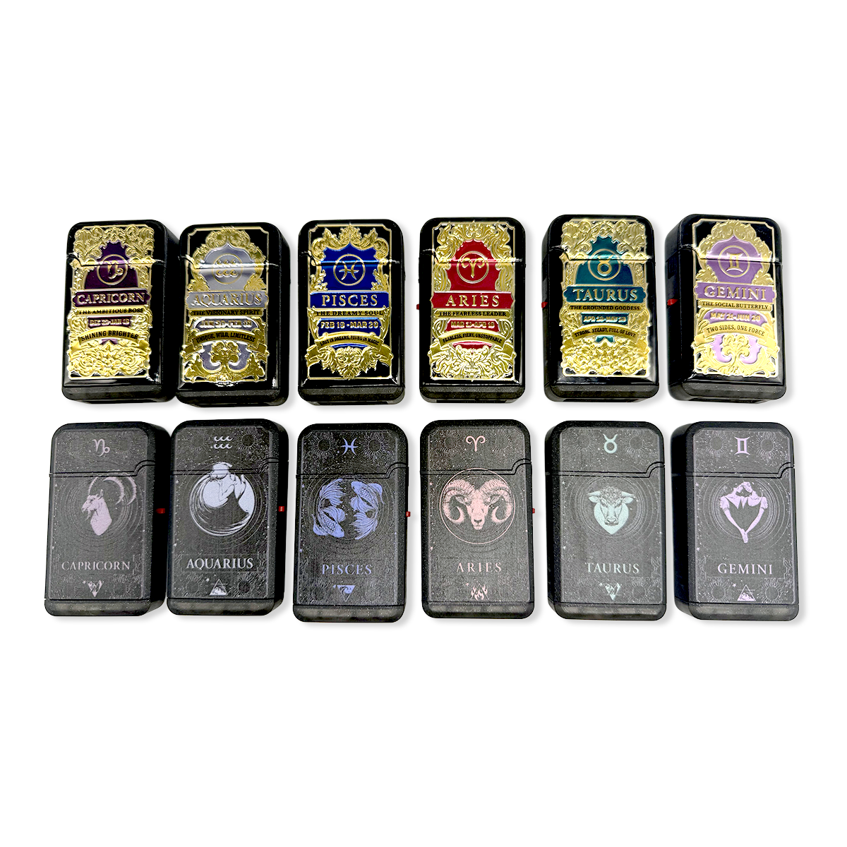 Ignite your spirit with the Zodiac Foil Torch Lighter, featuring a powerful dual turbo torch flame for precise and strong ignition. Each lighter showcases unique zodiac foil designs, allowing you to find your sign and embrace your personal power. These lighters combine style and functionality, making them perfect for collectors or as thoughtful gifts. Light up your world with confidence and cosmic energy.